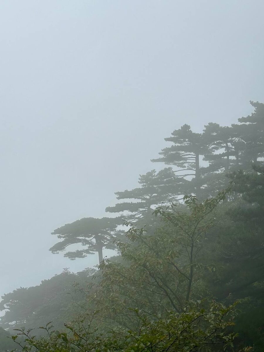Итак, превью уже было, рассказываю: решили съездить на денек в Хуаншань и забраться на гору. Забрались……… Туман был настолько сильный, что только этим мы и занимались, но зато какие красивые сосны в тумане! Был ОДИН просвет, но он открылся на 10 минут 🙂 Горы Хуаншань играют очень большую роль в чернухе — особенно в 3 томе. Это место, где располагается орден Чэньси, родной орден Мо Хэ, главного героя. Правда, в те времена (а у меня примерно 557 г.) горы назывались Ишань — от слова «черный» — из-за черных скал (это ненамеренное совпадение….🙃). А главный пик — Лотосовый (куда нас не пустили из-за тумана) — является в чернухе также главным пиком Ишань. Сейчас горы называются Желтыми — Хуаншань (黄山). Современное название они получили благодаря Ли Баю (Ли Бо) в 747 году. Но и это не из-за цвета гор, из-за Желтого императора (黄帝, Хуанди), легендарного правителя Китая и прародителя китайской нации. Согласно легенде, Хуанди долгое время медитировал у подножия этих гор, после чего его душа