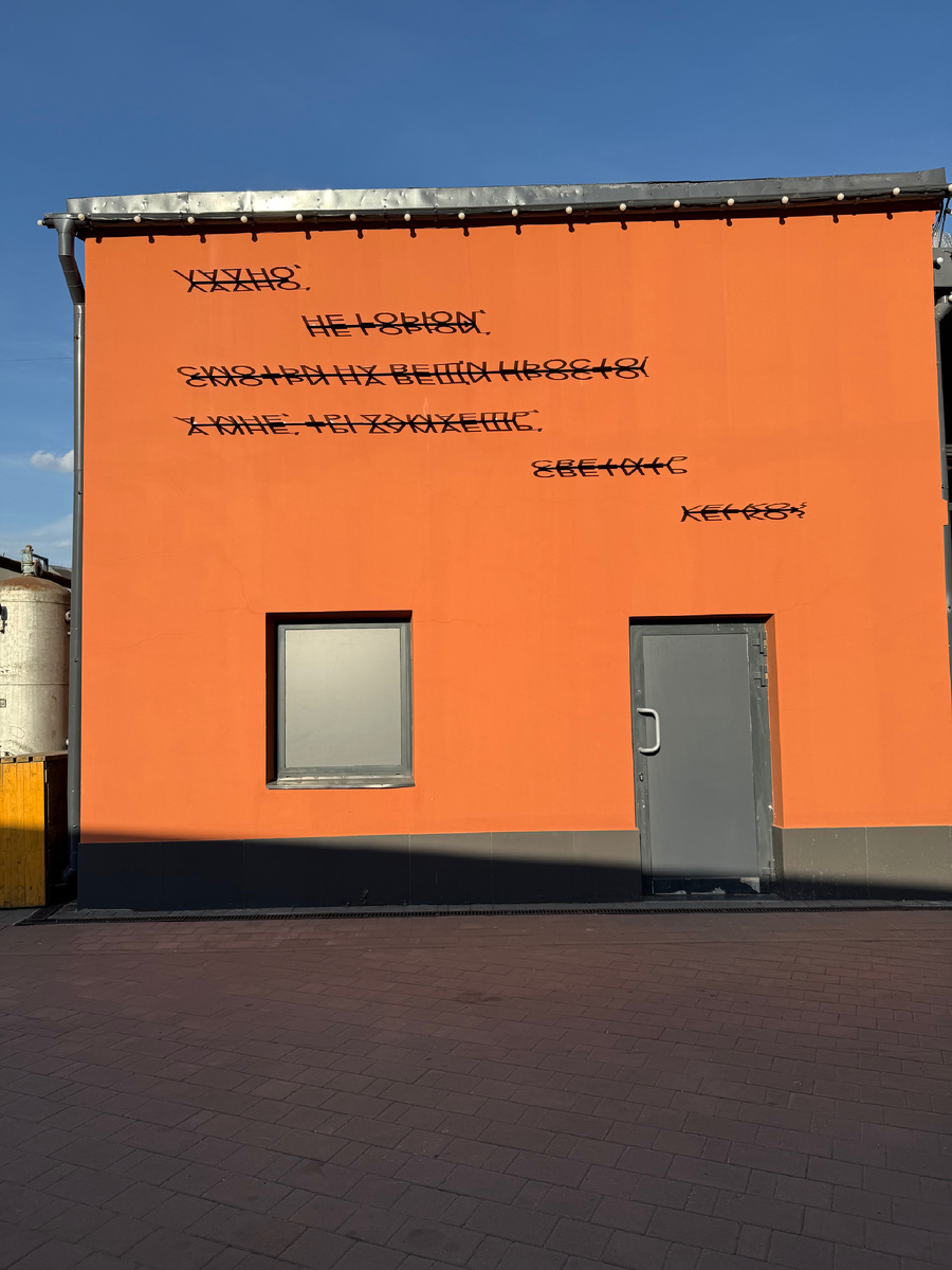 «Ладно, не горюй, смотри на вещи просто! А мне, ты думаешь, светить легко?» - такая надпись появляется на стене 30 строения Хлебозавода №9 только в солнечную погоду – дело в том, что надпись – это тень от букв, расположенных под углом 90 градусов.