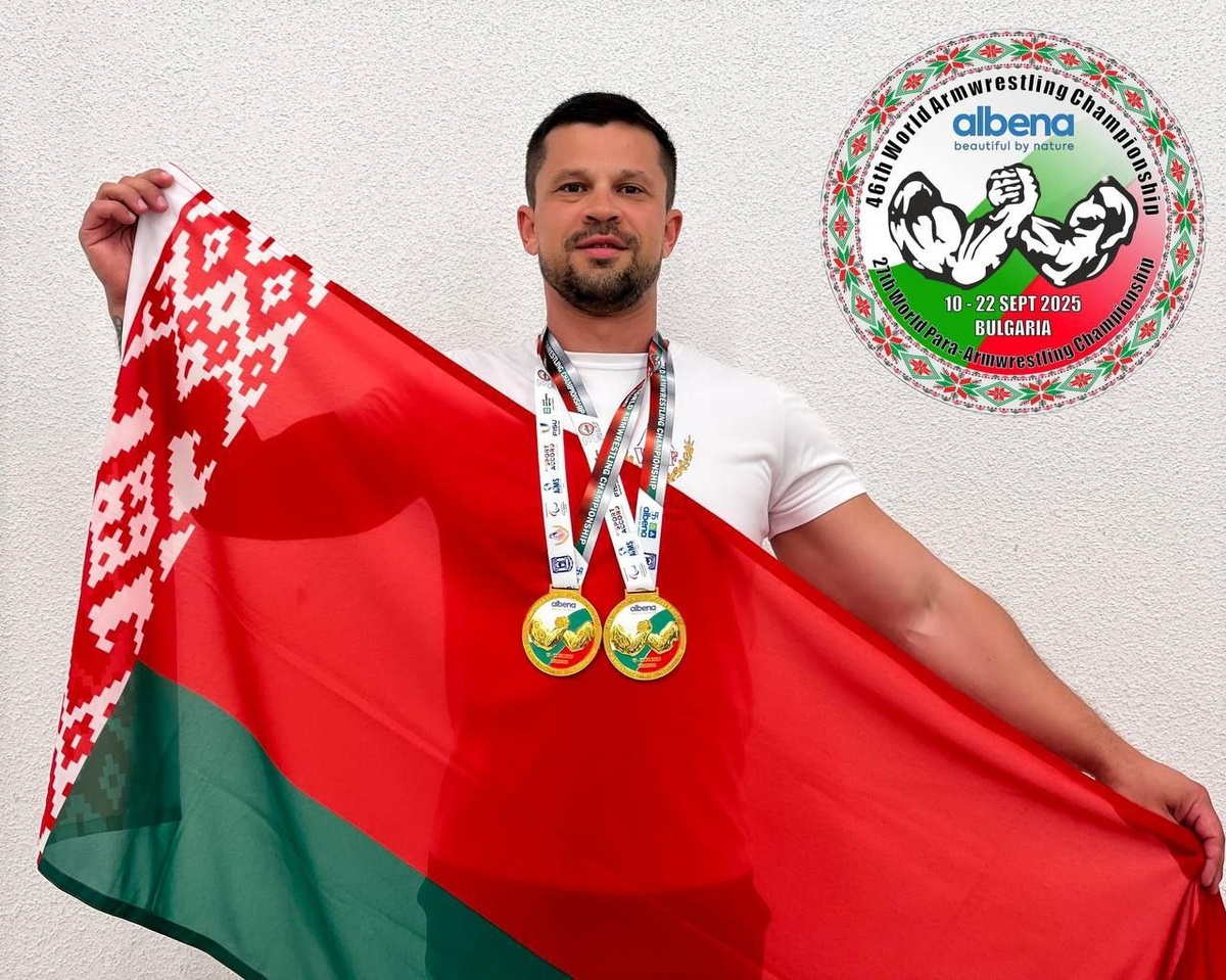 У ВИКТОРА БРАТЧЕНИ СРАЗУ ДВА ЗОЛОТА На чемпионате мира по армрестлингу, который проходит с 10 по 23 сентября в Албене, Болгария, спортсмены из Брестской области завоевали 4 медали 💪 🔥 Виктор Братченя по пара-армрестлингу в весовой категории до 80 кг завоевал 2 золотые медали 🥇 Сергей Сергель в номинации мастера (ветераны) в весовой категории до 100 кг взял 2 бронзы 💪