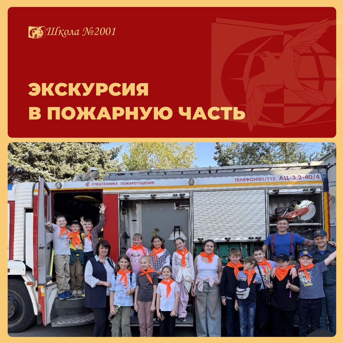 Четвероклассники побывали на экскурсии в пожарной части нашего района и узнали, как устроена работа настоящих спасателей! 🚒 Ребята познакомились с распорядком службы, увидели, как быстро пожарные собираются на вызов, и повторили правила безопасности. Оказалось, что спасатели — это не только те, кто тушит пожары. Они помогают в любых ЧС: на воде, в горах, на дороге. 🔥 Дети были в восторге от техники, дисциплины и силы духа пожарных. А главное — поняли, насколько это важная и ответственная профессия. Спасибо нашим спасателям за службу! #ДОНМ #Школа2001 #БезопаснаяСреда