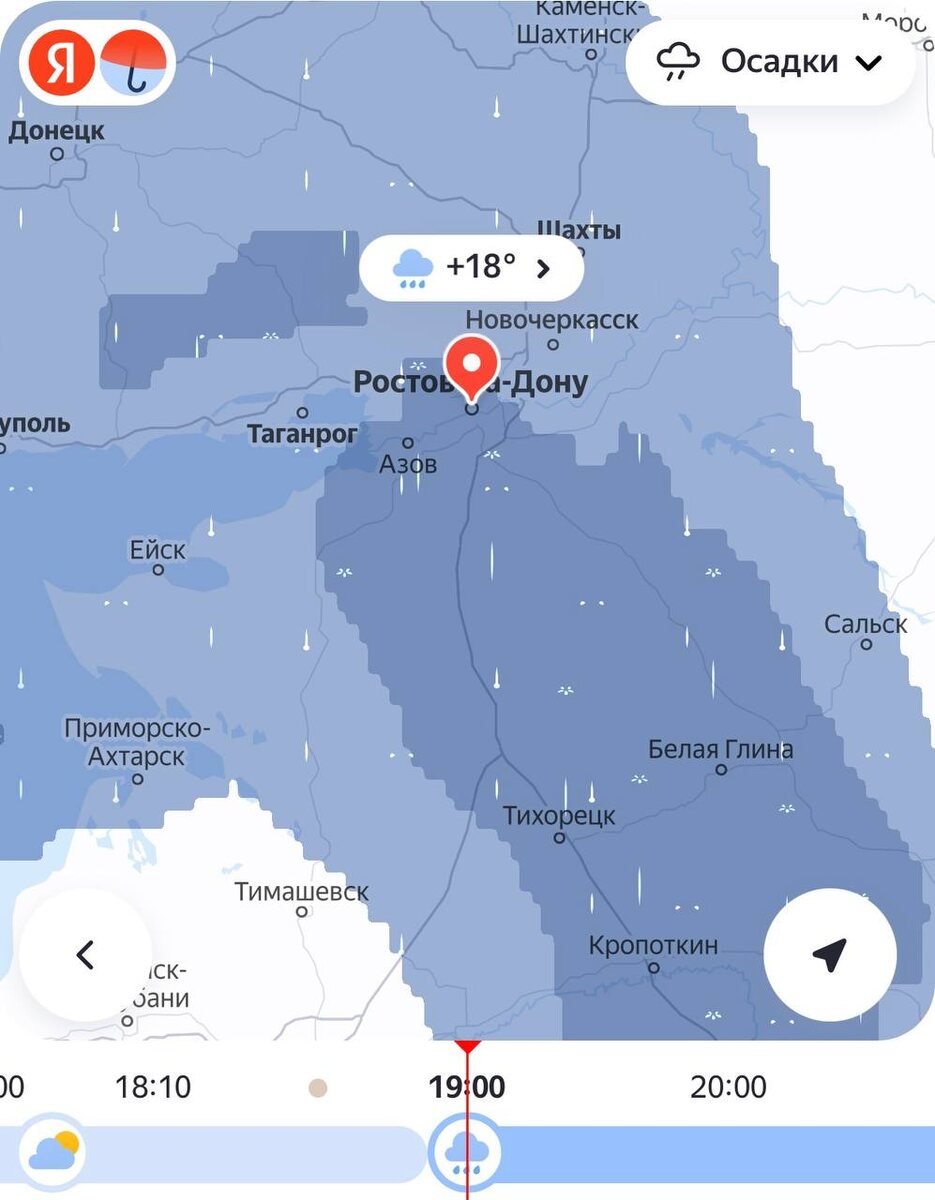 ⛈ К 19 часам Ростов окажется в центре ливня, который накроет всю область! Он будет идти всю ночь и только к утру небо прояснится