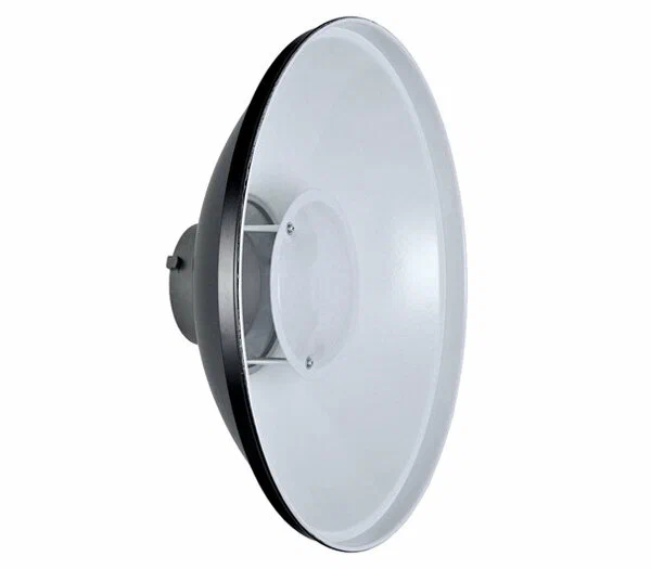 Белая версия портретной тарелки на 55 см. Дает более мягкий свет, чем серебряная, идеально подходит для женских портретов, где важна деликатность.