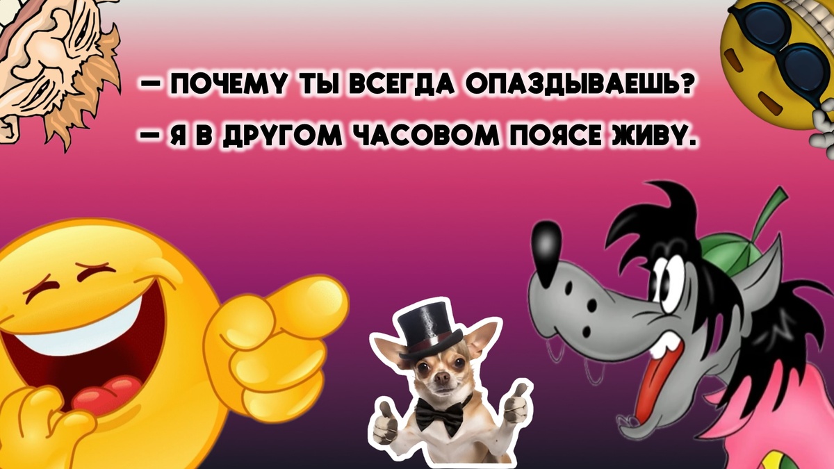 1. — Я разработал приложение, которое определяет национальность человека по фото. — И как оно работает? — Никак. Оно просто каждый раз выдаёт: "Человек". 2. — Дорогой, ты помнишь день нашего знакомства? — Конечно, дорогая! Это было 7 августа, вторник, шёл мелкий дождь, температура +18... — Ой, как романтично! — Нет, это данные с моего фитнес-браслета. 3. — Почему ваша кошка смотрит на меня с таким презрением? — Она не с презрением. Она просто составляет ваше психологическое досье. Не мешайте ей. 4. — Я вчера звал свою собаку полчаса, а она не отзывалась. — И что оказалось? — Оказалось, я был в гостях и звал чужую собаку. Своя была дома. 5. — Ваша работа связана с командировками? — Да, я тестирую кровати в отелях. Иногда по 16 часов в сутки. Это очень изматывающий труд. 6. — Папа, а почему ты назвал нашу лодку "Красная шапочка"? — Потому что бабушка её покупала. 7. — Я купил умную колонку. Теперь мы с женой не ругаемся. — Почему? — Мы объединились про