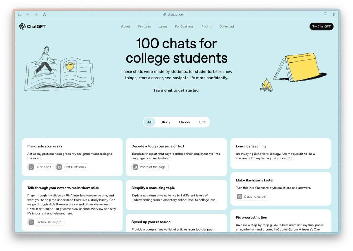 OpenAI выкатили подборку из 100 промтов для учебы, работы и обычной жизни