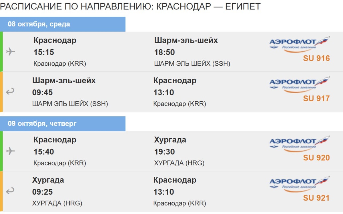 «Аэрофлот» начнет летать в Египет из Краснодара. Рейсы в Хургаду заявлены с 9 октября по четвергам и воскресеньям, в Шарм-эль-Шейх – с 8-го по средам и субботам. Туры с прямым перелетом из аэропорта Пашковский на курорты Красного моря уже появились в продаже у туроператора Библио-Глобус. Недельный тур с проживанием в 4* отеле на all inclusive можно купить по цене от 80 тыс. руб. на двоих, в 5* - от 107 тыс. Билетов в свободной продаже нет. Подробнее написали на ТурДоме. @tourdom