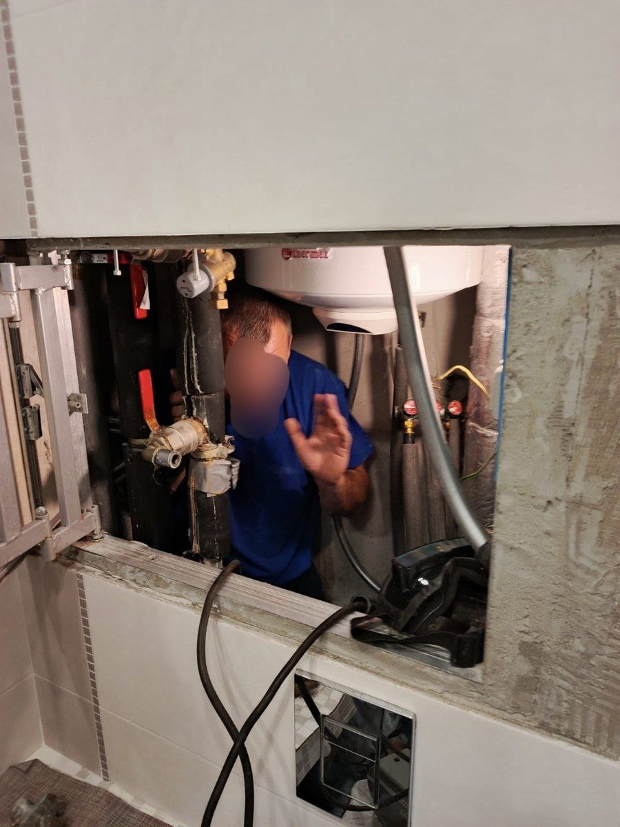 Для понимания : мужчина рост около190, вес кг 90. Как он туда залез не понимаю!))) Слава Богу что обошлось таким образом, а то пришлось бы ломать стену и чтобы нам встало не в 15.000, а намного больше.