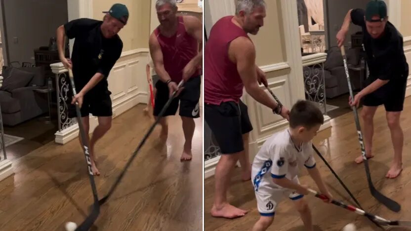 Играли в хоккей с мячом два на два. Овечкин и Сандин, похоже, были в разных командах. В матче участвовали и сыновья Ови. Видео опубликовала в соцсетях супруга российского форварда Анастасия.