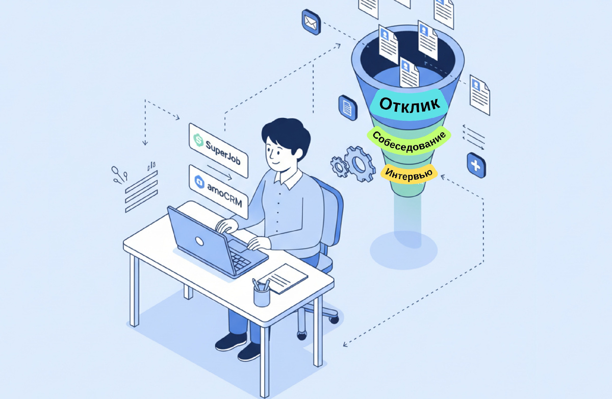 Каждая крупная компания сталкивается с проблемой: ежедневно на открытые вакансии приходят сотни резюме. HR-отделы тратят часы на ручной перенос данных в CRM, создание карточек кандидатов и проверку дубликатов. В результате рутина отнимает время от главного — общения с кандидатами, а вакансии закрываются медленнее, чем хотелось бы. В этой статье мы расскажем, как интеграция SuperJob и amoCRM через Пинкит автоматизирует обработку резюме, экономит время и превращает хаос в управляемую воронку подбора персонала.