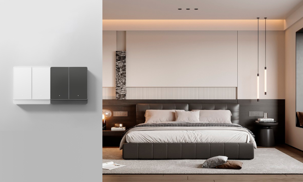 Выключатель Yeelight Pro D (YP-0561, YP-0562, YP-0563, YP-0564) представлен в различных вариантах цветов и в лаконичном «парящем» дизайне. Отличительная особенность состоит в использовании технологии пересечения нуля, что позволяет предотвращать скачки напряжения и продлить срок службы источника света. Модель сделана из матового AG-стекла, устойчивого к отпечаткам, имеет сверхнизкое энергопотребление в режиме ожидания и огнестойкие компоненты. С помощью выключателя можно управлять светильниками или умными моторами для штор Yeelight Pro, в том числе запускать сценарии умного дома. Модель серии D имеет классическое клавишное управление с индикацией состояния.