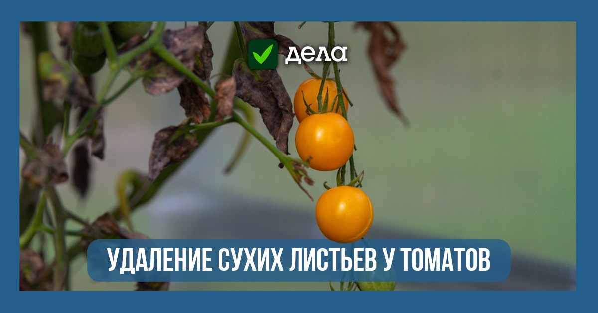 Удаление сухих и поврежденных листьев у томатов 🍅 Удаление сухих и подозрительных листьев у томатов — важная процедура в конце сезона, когда растения уязвимы к грибковым заболеваниям и перепадам температуры. 🍅 Так улучшается вентиляция куста, снижается риск заражения соседних листьев и кустов (при густой посадке). 🍅 Сухие и пожелтевшие листья больше не участвуют в фотосинтезе, но продолжают забирать питательные вещества. 🍅 Подозрительные листья с пятнами, налётом или деформацией могут быть источником фитофторы, альтернариоза и других болезней. 🍅 Для удаления такой листвы используйте острые ножницы или секатор, предварительно продезинфицированные. Обрабатывайте инструмент дезраствором при переходе от одного куста к другому. 🍅 Не оставляйте растительные отходы на грядке — старайтесь листву сразу утилизировать.