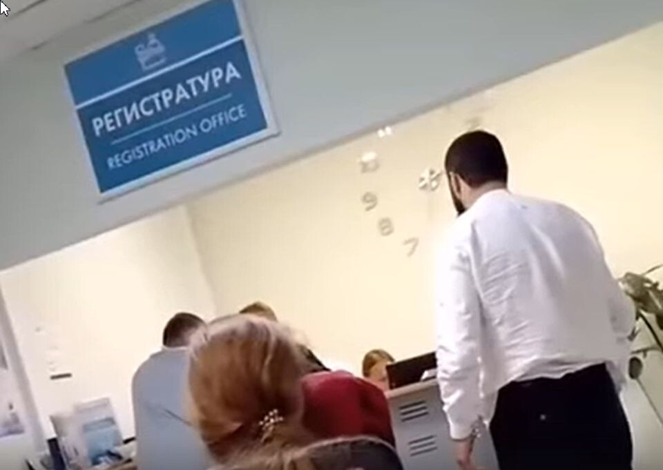 Действие развернулось в поликлинике, расположенной на улице Лавочкина, где люди терпеливо ждали своей очереди. Кто-то читал прессу, кто-то просматривал ленту новостей в телефоне, а пожилая дама в углу занималась вязанием. В этот момент в зону регистрации вошел 32-летний Рахим, приехавший из Центральной Азии для работы на строительстве в Московской области. Он уверенно подошел к стойке, держа в руках направление к специалисту-ортопеду, и, не дожидаясь своей очереди, громко потребовал немедленного приема из-за сильной боли в ноге.