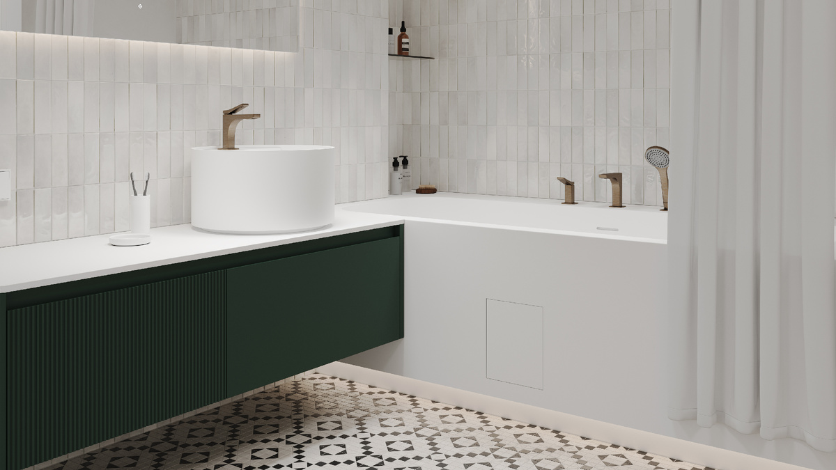 Переживаете, что экраны навсегда перекроют доступ к сантехническим коммуникациям? Для удобного доступа к сифону и более лёгкого обслуживания ванны можно вырезать скрытый ревизионный люк во фронтальном экране. Он может иметь как стандартные (200 х 250 мм), так и индивидуальные размеры. Люк с тонким контуром, находящийся в одной плоскости с экраном, будет выглядеть аккуратно и лаконично.