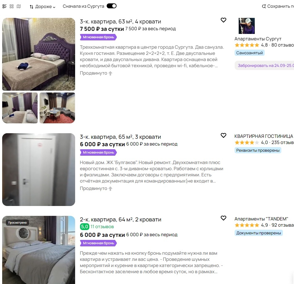 Закончив ремонт в номере "Алисин дом" и оформив все нужное документально (см статью выше, 49 день) - я озадачилась, за какую сумму сдавать квартиру на сутки? Как и любому человеку, Игорю хотелось вернуть как можно быстрей вложенные средства, а мне, как аналитику и многолетнему практику сдачи квартир посуточно, было ясно - что и почем. Да вот только Игорь ну никак не мог смириться с высчитанной мной суммой. И я как "примерная" жена, решила - пусть будет так, как сказал муж! Он у нас главный? Он. Он у нас добытчик? Он. ОН за все платит? Он. Так пусть сам и убедится, что больше, чем за 4000 рублей в сутки эту квартиру - не сдать. А за 7000/сутки, как он хочет - невозможно. Не... ну а чо? Я тоже бы хотела за 7, но... Жизнь вносит свои коррективы, так же как и особенности нашего города. И я начала собирать конкурентов. Выставила по уменьшению (смотрите карусель) По уровню дизайнерской задумки - есть 4-5 конкурентов, но ни у кого нет - умного дома, а тот, что мы смотрели до начала нашего р