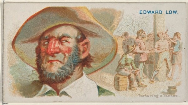 Кто был самым жестоким пиратом/буканьером/капером в истории? Наверное, Эдвард Лоу. Вопрос о том, кто из пиратов был хуже, остаётся открытым, поскольку все морские разбойники были преступниками. Но Лоу был другим — жестоким, странным парнем. Другие пираты хотели золота, а Лоу, казалось, хотел только страданий. Он был родом из Бостона, но ушёл в море и научился ненавидеть весь мир. Его флаг представлял собой красный скелет на чёрном поле — честный флаг, он не торговался. Он захватывал корабль, и если капитан сопротивлялся, Лоу отрезал ему губы. Затем он поджаривал их и заставлял капитана есть. Он захватил португальский корабль и сжёг всех тридцать два человека, находившихся на борту. Однажды он разозлился на собственного повара. Он привязал его к мачте и поджёг весь корабль. Чёрная Борода имел репутацию — Лоу был больной на голову, и суть была в жестокости, а не в золоте.