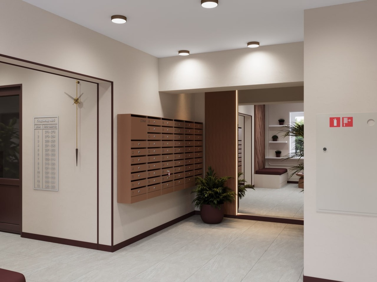 Подбор цветовых решений и 3д визуализации подъезда были выполнены для управляющей компании