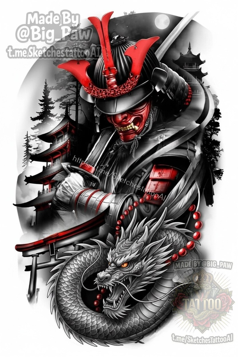 #2741 Подборка по запросу подписчика - можно сделать такой эскиз на спину только без этих листочков и заместо орла внизу чтобы дракон примерно такой же был 😎 При удалении листочков часто удаляется и часть композиции, поэтому и с ними и без варианты 🧠 SYNTX - создай свой эскиз 💎 Информация - все услуги 💀 Эскизы от нейросети #самурай #дракон #япония #эскиз #тату #татуировка
