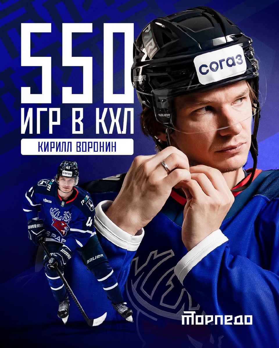 Наши поздравления летят в адрес нападающего «Торпедо» 🦌 Кирилла Воронина, который сегодня проводит свой 550-й матч в КХЛ