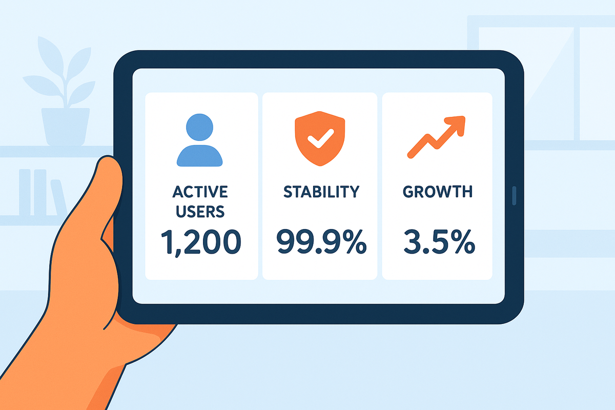 Вы не знаете, с какой скоростью едете, сколько осталось топлива и не перегревается ли двигатель. Можно ли так добраться до цели? Теоретически да, но риск велик: либо заглохнете, либо попадёте в аварию. С продуктами та же история. Если вы делаете сервис или приложение, но не смотрите на метрики, вы едете вслепую. Код может быть идеальным, дизайн — стильным, а пользователи… уже уходят. Метрики — это приборная панель вашего продукта. Давайте разберёмся, какие «датчики» на ней должны быть и зачем они нужны. Эти показатели отвечают на главный вопрос: работает ли продукт стабильно?