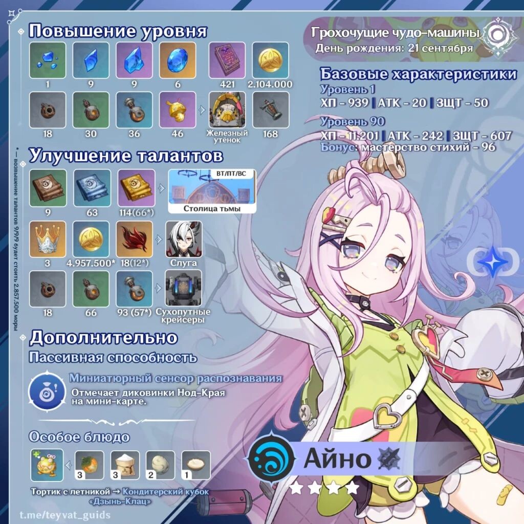 ㅤАйно выдаётся бесплатно, а получить созвездия можно будет уже в ближайшем времени. Она проста в управлении и не требует легендарного оружия. Айно подходит в большое количество отрядов, что делает её хорошей боевой единицей для всех игроков.