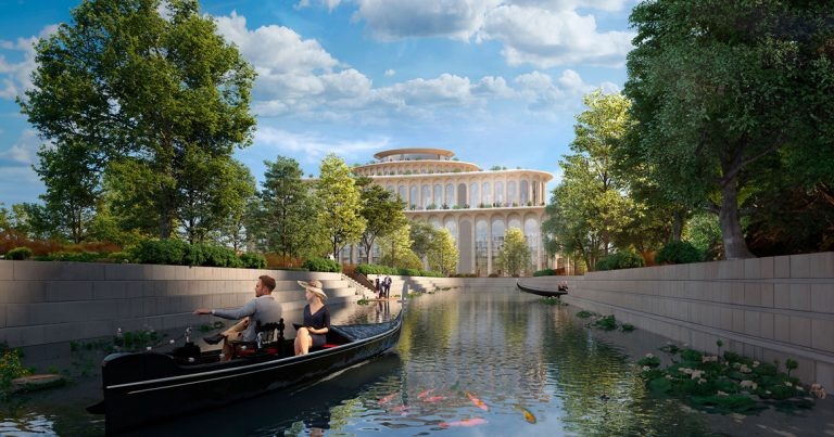 Название многофункционального комплекса «Венеция», который сейчас достраивают на Краснопресненской набережной, было нам намеком. Оказывается, дело не ограничится только сдачей самого сооружения — парк «Красная Пресня», на территории которого его возводят, вскоре ждет масштабное благоустройство. Там будут делать филиал Венеции. Очень интересно, кому пришла в голову такая замечательная идея — то ли московским властям, то ли «Киевской площади» Года Нисанова и Зараха Илиева, которая, собственно, ведет строительство. Но факт в том, что рендеры нового парка, пока не слишком детальные, уже опубликованы на официальном сайте комплекса. Сегодня телеграм-канал «СысоевFM» сообщил, что в парке уже начинается благоустройство. Вот что пишет Александр Сысоев: «Сделают каналы, соединят их, пустят по воде лодочки, как в настоящей Венеции или Джумейре. Добавят корты для тенниса и падел-тенниса, шоу фонтанов. Получится свой маленький Central Park — уютный и живой». Мы лично не уверены, что жители Пресни б