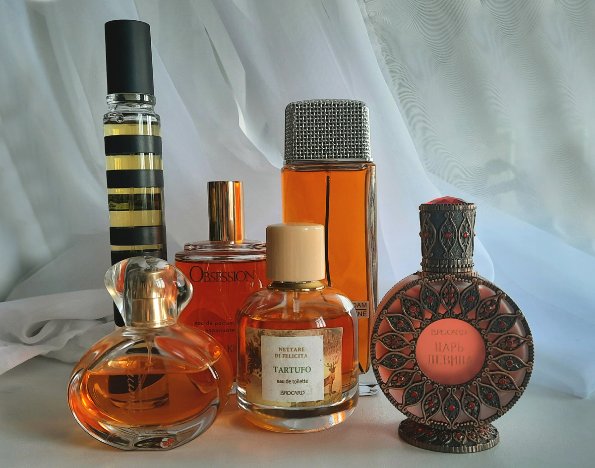 Вот и настала пора желтизны и багрянца в листве, шуршащих шагов по тротуарам и прохладного ветра, играющего лучами солнца. Буду банальной, но в это время рука сама тянется к согревающим, пряным, амбровым ароматам. У некоторых даже цвет соответствует настроению!