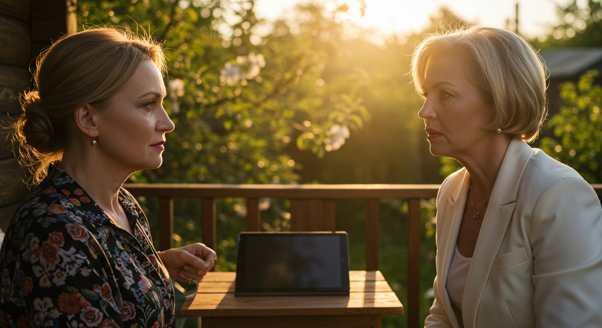 Со стороны дороги донесся звук решительно работающего двигателя, а затем резкий скрип тормозов. Лидия. Она всегда приезжала так, будто штурмовала крепость. Через минуту на веранду влетела и сама подруга — энергичная, подтянутая, в белоснежном льняном костюме, который кричал о своей цене.