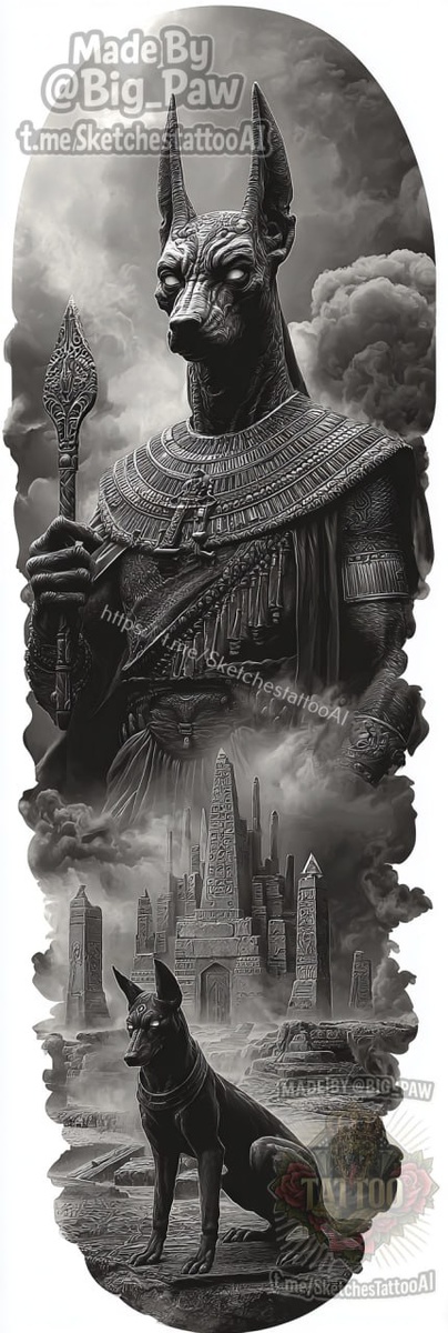 #2744 Подборка от админа - ещё эксперименты. Один промт - 9 стилей. Все коды стилей с этой подборки в группе нейробро 🫰 🧠 SYNTX - создай свой эскиз 💎 Информация - все услуги 💀 Эскизы от нейросети #анубис #египет #стиль #эскиз #тату #татуировка