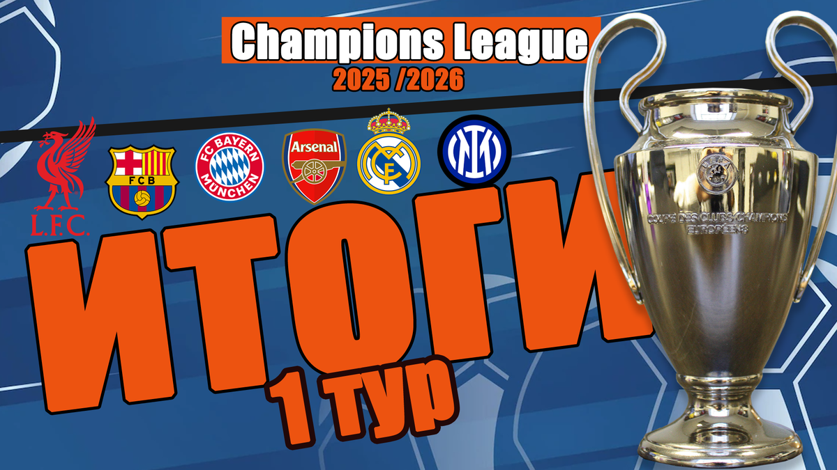 Доброй ночи. Месси продлил контракт с Интером Майами, а сборная России по футболу с 35-го поднялась на 33-ю строчку в рейтинге ФИФА. Но нас сегодня интересуют еврокубки, поэтому подводим итоги 1-го тура в Лиге Чемпионов и бонус – посмотрим, кто с кем сразится во втором туре. Как сыграли команды в ЛЧ? ПСВ уступил дома бельгийскому Юниону. Также на выезде победы отпраздновали Арсенал и Карабах. Тоттенхэм и Реал победили с минимальным счётом Вильярреал и Марсель соответственно, а Ювентус и Боруссия сняли фильм похлеще, чем у гая Ричи (4:4). В среду зафиксированы две ничьи между Олимпиакосом и Пафосом, Славией и Будё/Глимт. Интер увёз 3 очка из Амстердама, ПСЖ разорвал Аталанту (4:0), Ливерпуль и Бавария победили Атлетико и Челси. В четверг "Монако" без Головина проиграл "Брюгге" со счётом 1:4. Копенгаген и Байер заключили мир (2:2). Фармацевты до этого выиграл все три матча в истории противостояний. Кайрат уступил Спортингу – 4:1. Как вы знаете, Кайрат подошёл к этому матчу с тремя победа