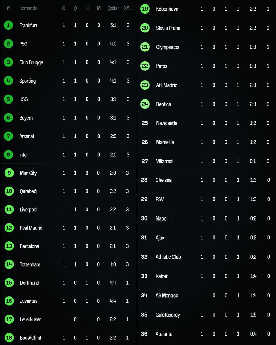 ⚽️ "Карабах" в первой десятке турнирной таблицы Лиги чемпионов УЕФА.