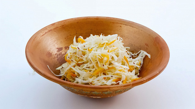 1.Капусту тонко нашинковать, морковь натереть на терке. 2.Смешать рассол из воды (комнатной температуры) и соли. 3.Залить рассолом капусту, добавить тмин и перемешать. Накрыть и убрать в темное теплое место на 2-3 дня. За это время капуста должна начать бродить и обрести резкость во вкусе. 4.Спустя 2-3 дня добавить в капусту сахар и тщательно перемешать, до его растворения. 5.Затем слить рассол, переложить капусту в банку и убрать в холодильник на сутки, после чего можно ее подавать. Любите читать Дзен «Еды»? Расскажите свое мнение о материале в комментариях и ставьте свои лайки!