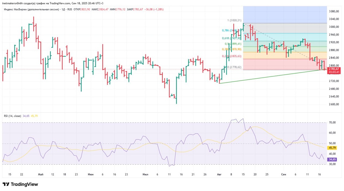 ❗️18 сентября российский фондовый рынок упал, индекс МосБиржи подешевел на 0,73% до уровня 2793,58