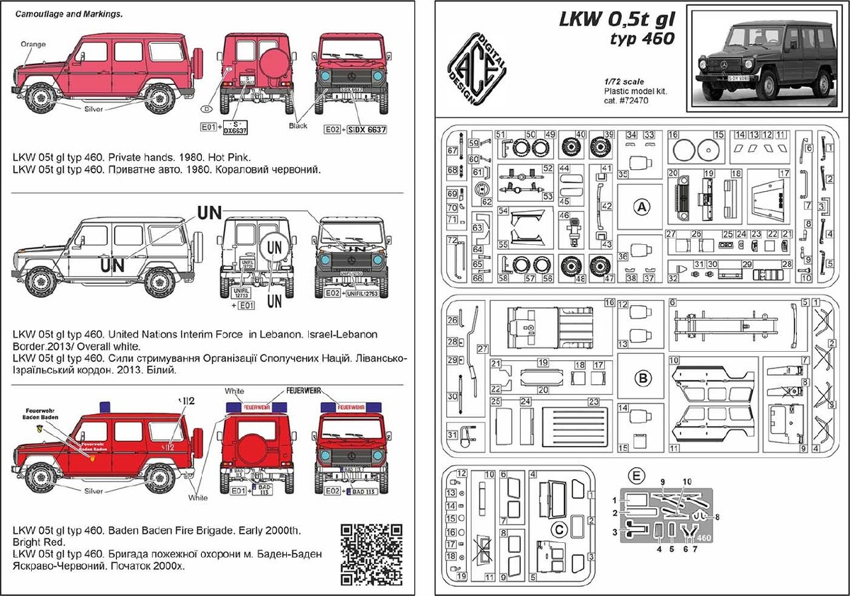 Киевская ACE показала инструкцию и варианты окраски своей готовящейся к выходу модели 4x4 LKW 0,5t gl typ 460 (gelendvagen) в масштабе 1/72.
