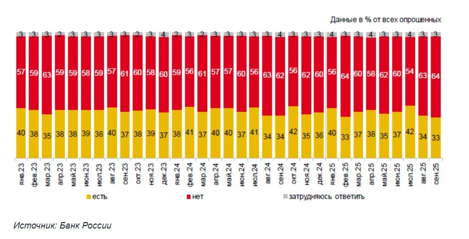 Доля россиян, которые не имеют финансовой «подушки» безопасности, выросла до 64