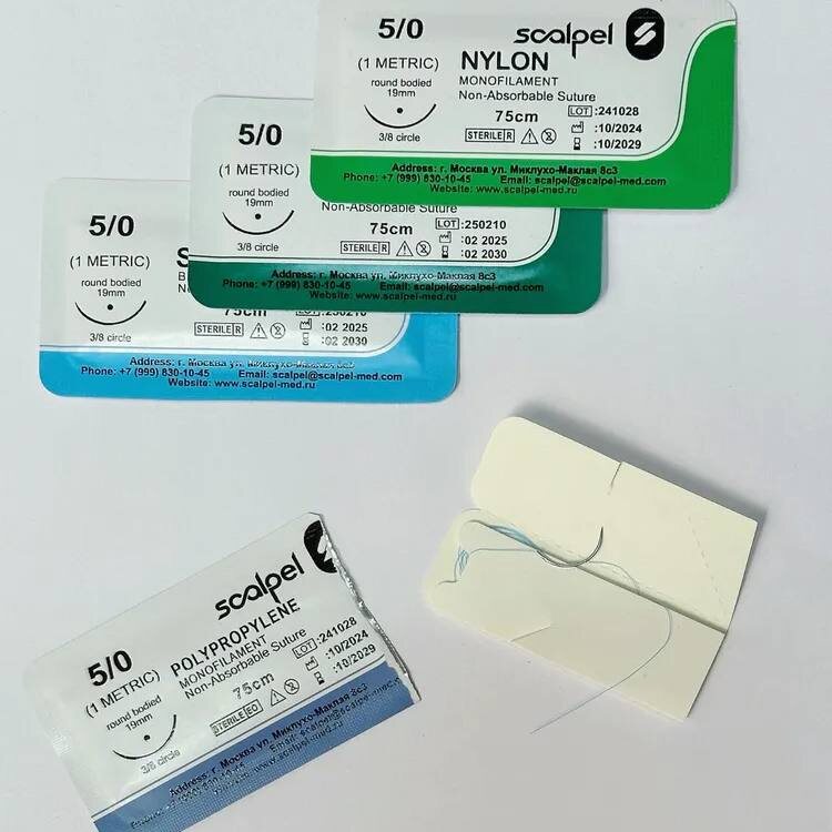 Шовный материал — общее название специализированных нитей, которые используются для соединения тканей во время хирургических вмешательств Классификация шовного материала по структуре: Одно нитевой - состоит из одного волокна (например, ПДС, монокрил) Много нитевой - состоит из нескольких волокон Много нитевой материал подразделяется на: Кручёный - волокна таких нитей скручены по оси (капрон, лен и крученый шелк) Плетёный - волокна таких нитей сплетены (лавсан) Комбинированный - плетёная нить, которая покрыта полимерными материалами (фторекс, викрил) Многоволоконные нити прочнее одноволоконных, у них выше манипуляционные свойства, а значит - меньше травмируются ткани (требуется меньше узлов) Также нить более прочная, но при этом более мягкая и не так чувствуется пациентами на коже, но её поверхность неоднородна и шероховата - из-за этого она может травмировать и резать ткани подобно пиле Помимо этого, между волокнами полинитей могут создаваться условия для роста бактерий и кончики нитей
