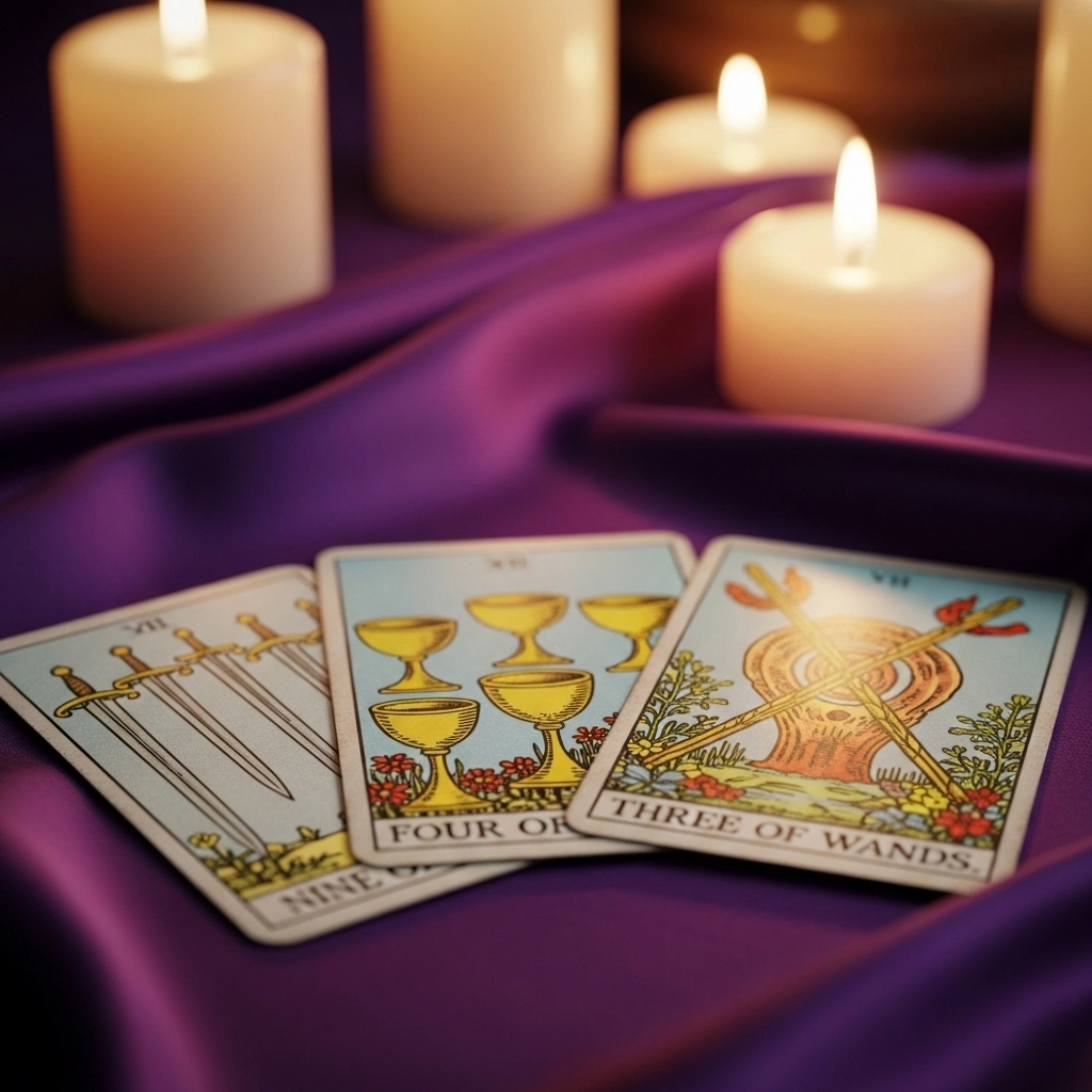 Значение: Четвёрка Кубков символизирует апатию, скуку, разочарование и эмоциональную отстранённость. В контексте вопроса о том, куда он пропал, эта карта указывает на то, что его "исчезновение" связано с внутренним состоянием, а не обязательно с физическим уходом.