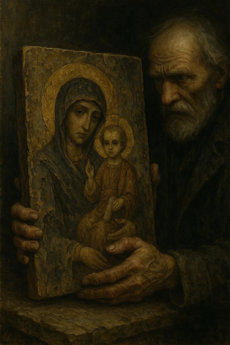 Зима 1994 года выдалась особенно суровой. Мы с дедом разбирали вещи на чердаке старого дома, который готовился под снос. Среди старых рам, пожелтевших газет и пустых банок мой взгляд упал на небольшой сверток, тщательно завернутый в холщовую ткань. Развернув его, я обнаружил старинную икону. Деревянная доска была почерневшей от времени, но сквозь слой копоти проступали лики святых — удивительной красоты работа древних мастеров. На обороте едва читалась надпись: «Спас Нерукотворный. 1694 год». Дед, увидев находку, перекрестился: «Это же семейная реликвия! Её спасли во время пожара 1812 года. Думал, навсегда lost...» Мы осторожно спустили икону вниз и принялись за очистку. Под слоем копоти и старого лака открылась удивительная работа — тончайшая роспись, золочение, самоцветы вместо глаз святых. Но самое интересное ждало нас, когда мы сняли заднюю панель — там оказался потайной отсек с письмами. Это была переписка моих предков — купцов первой гильдии, ведущих дела с Европой. Но среди дело