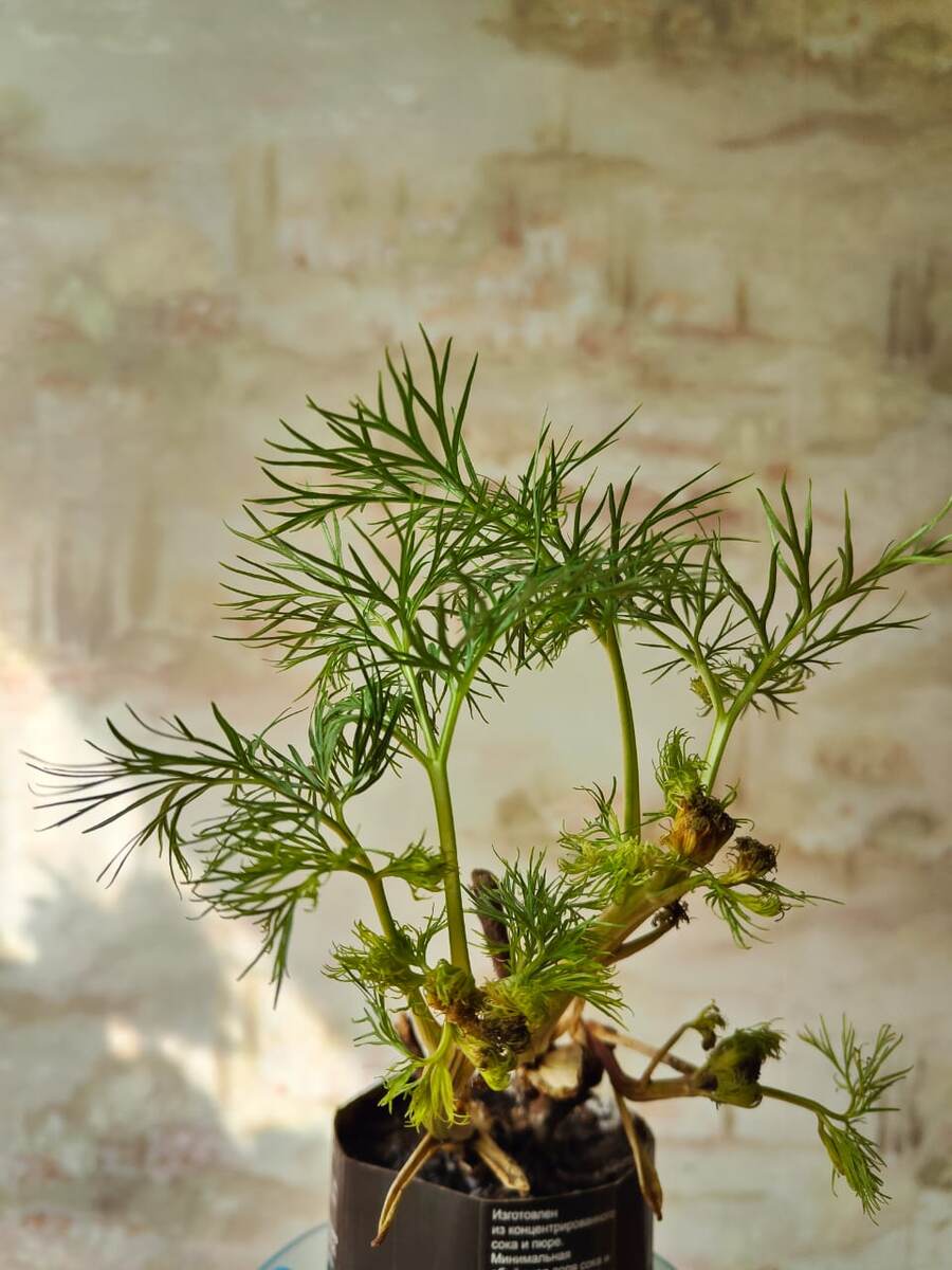 Давно мне хотелось заполучить пион тонколистный. Но как-то всё не случалось. И вот весной на Авито случайно наткнулась на предложение. Дополнительным стимулом для покупки стало то, что продавец жил относительно недалеко от моего дома. Да и цена по нашим временам была вполне умеренной. Трезвая часть моего ума говорила, что это плохая идея: как известно, сажать пионы весной весьма рискованно. Но другая часть ума (даже затрудняюсь, как назвать её - безбашенная, головотяпская, безрассудная?) просто кричала: бери! Вдруг другого случая в ближайшем будущем не предвидится? Поддалась уговорам. Ведь если садоводу хочется что-то купить, разве его что-нибудь остановит? Даже трезвые, логичные, убедительные доводы? Короче, купила. Уже в момент покупки понимала, что будут проблемы. Ростки были большие, намного больше, чем на фото в объявлении. Но ведь не уезжать же с пустыми руками? Купила. Авось, пронесёт. Я всё же уже опытный садовод. Ха-ха. Дома посадила купленную делёнку в ёмкость с землёй и выс