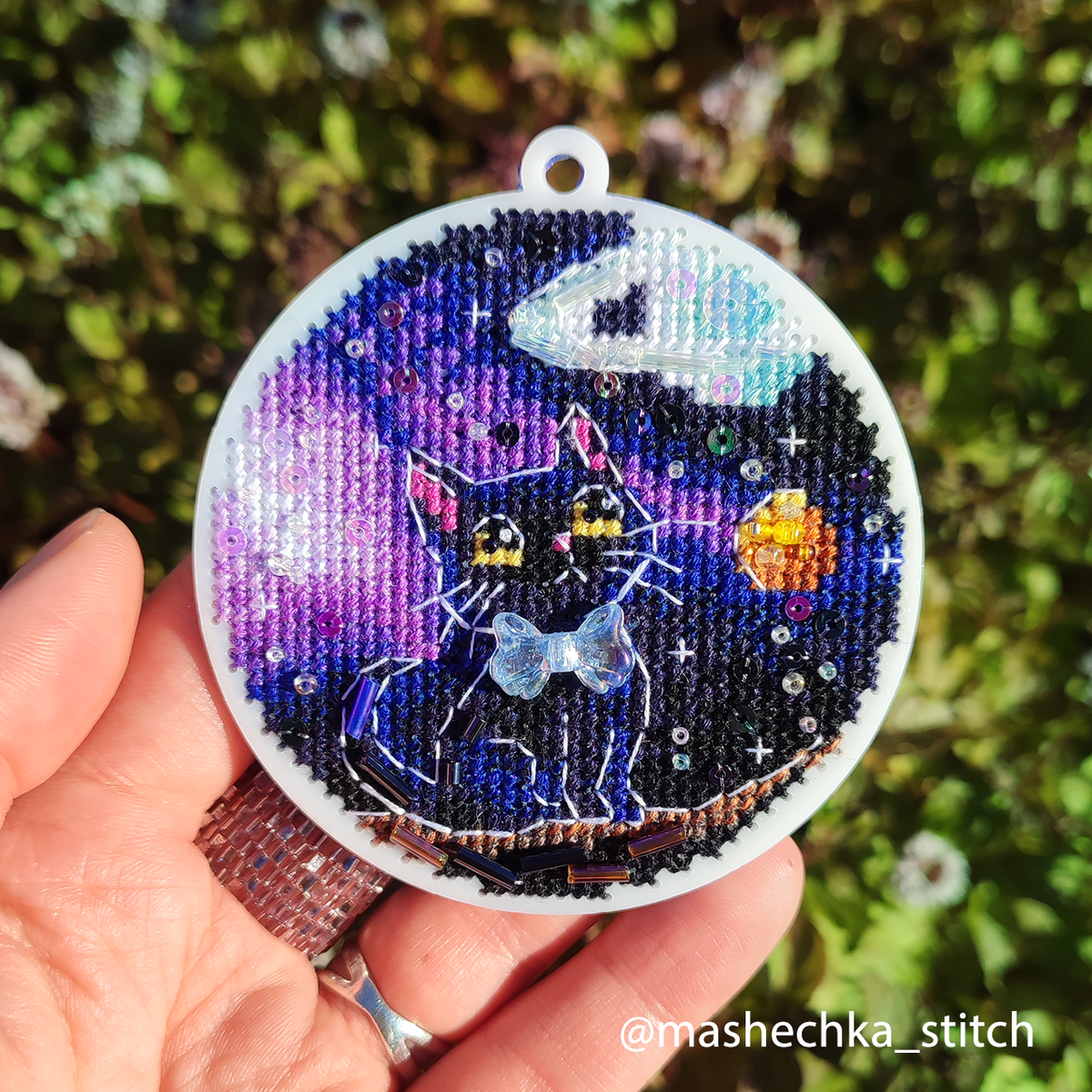 ✨Закончила котика из флешмобу «Космическое разнообразие», которое уже давно закончилось. Во время флешмоба я была очень занята, но схемы, которые понравились, сохранила и даже заказала основы для вышивки.