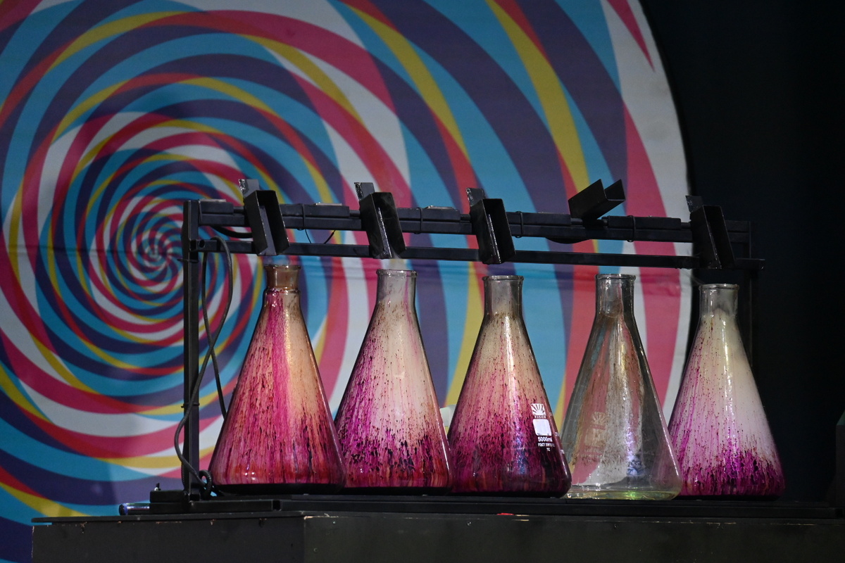 В субботу мы с дочкой посетили фестиваль WOW! HOW? Art&Science, проходивший в Московском дворце пионеров на Воробьевых горах. Главным событием программы было научное шоу «Наука в кино». Из множества мероприятий на день города я выбрала это, поскольку мне очень понравилась его концепция – наглядно показать детям симбиоз науки и искусства, объясняя, как сложные физические и химические процессы лежат в основе создания спецэффектов в их любимых фильмах. Ожидания полностью себя оправдали. В ходе шоу ученые на сцене рассказывали о методах, применявшихся для создания зрелищных сцен до широкого внедрения компьютерной графики. Каждое повествование заканчивалось эффектным научным опытом: жидкость в гигантских колбах бурлила и меняла цвет, сцену окутывал дым, сверкали молнии, зал озарялся ослепительными вспышками, и даже раздавался настоящий взрыв. Дети в зале были в полном восторге! После шоу мы ознакомились с интерактивными зонами, занимавшими в этот день два этажа дворца. Каждая площадка предл
