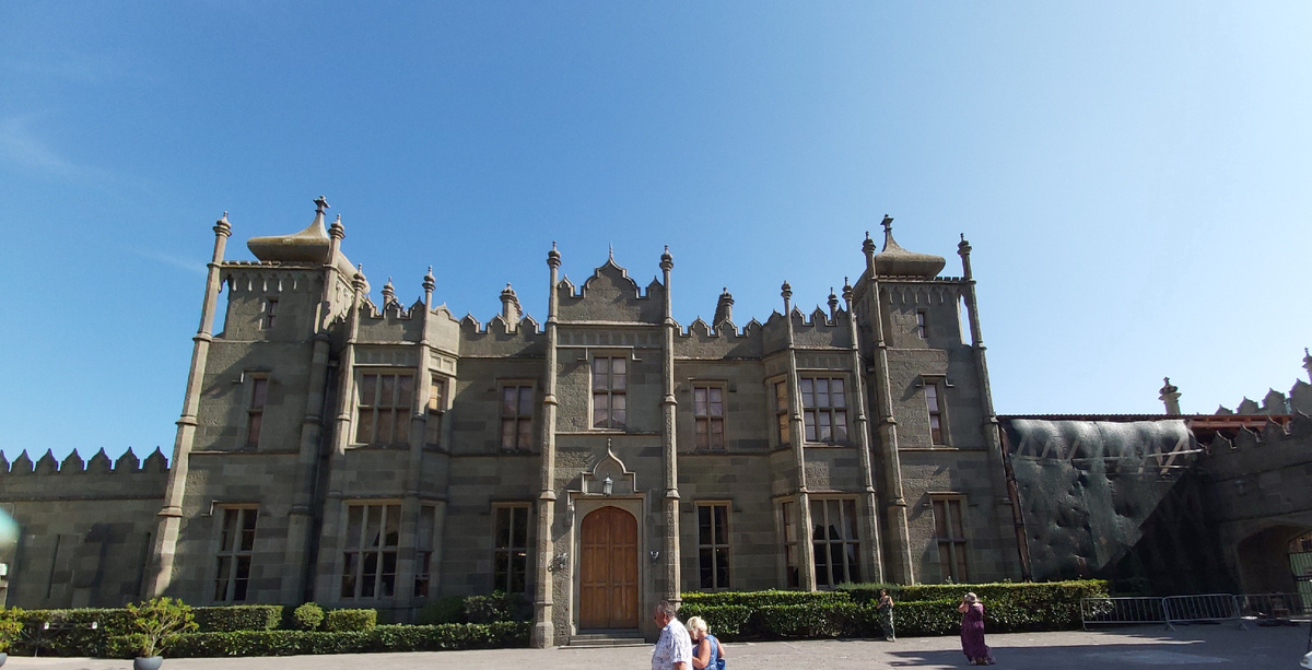 Рассказ о поездке в Ялту продолжается, в прошлой статье мы посетили Ливадийский дворец а сегодня хочу показать еще один не менее известный дворец-Воронцовский. Находится он не в Ялте, а в соседнем городе Алупке, доехать на автобусе можно за 30-40 минут. А название свое получил в честь генерал-губернатора Михаила Семеновича Воронцова, для которого дворец и был построен в качестве летней резиденции. Дворец стал настоящим "родовым поместьем", в нем прожило несколько поколений семьи генерал-губернатора, а после революции его национализировали и открыли музей. Дворец поучаствовал и в Ялтинской конференции-в нем во время ее проведения жила английская делегация в главе с Черчиллем. К сожалению, внутрь попасть не удалось-вход был возможен только с экскурсией, а ждать ее не было времени, поэтому дворец посмотрела только снаружи. Я не очень хорошо разбираюсь в архитектурных стилях, но мне показалось, что он похож на готический замок во дворце шла реконструкция, и часть его была закрыта Дворец ок
