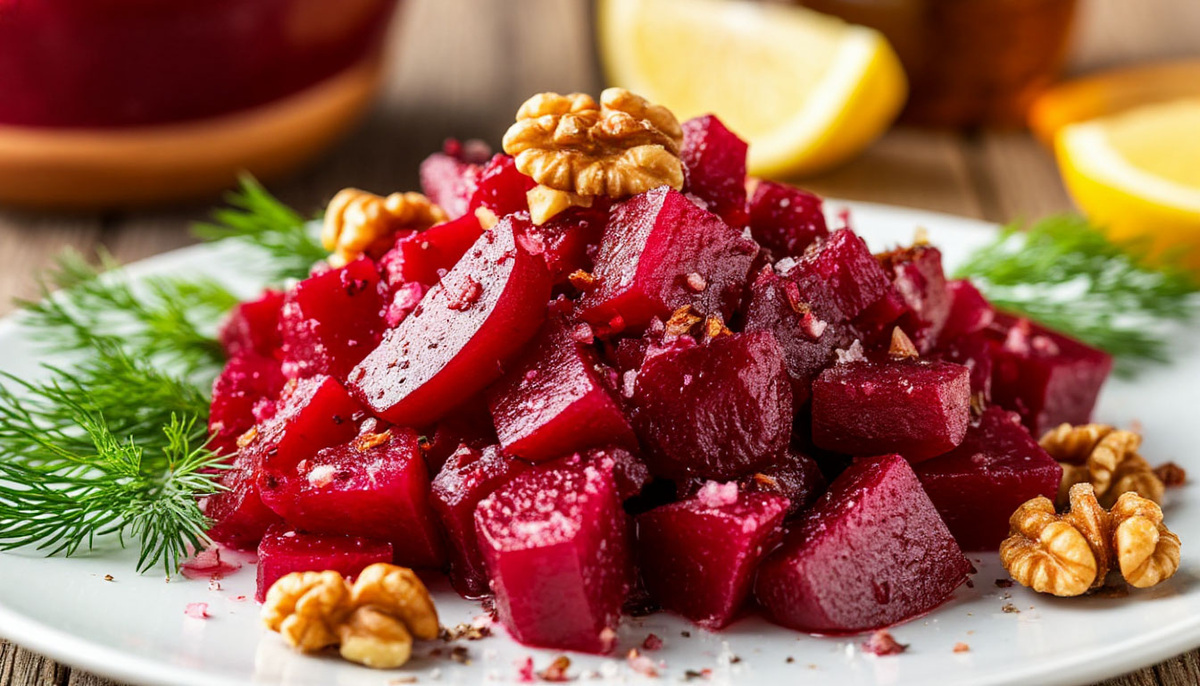 Автор: @Алексей рецепт №6 Салат из свеклы с чесноком и грецкими орехами Ингредиенты (на 2 порции): Пошаговый процесс: 1. Подготовьте свеклу: Очистите сырую свеклу и натрите на крупной тёрке в миску. 2. Сделайте заправку: В отдельной чашке смешайте оливковое масло, лимонный сок, мёд, соль и перец. 3. Добавьте чеснок и орехи: Чеснок пропустите через пресс, грецкие орехи мелко порубите ножом. Добавьте к свекле. 4. Соедините компоненты: Полейте свеклу заправкой, тщательно перемешайте. 5. Настаивайте: Накройте салат плёнкой и оставьте в холодильнике на 20 минут. 6. Подавайте: Переложите в салатник, украсьте рубленым укропом. Время приготовления: Калорийность на порцию: - 245 ккал (Белки: 4 г, Жиры: 18 г, Углеводы: 19 г) 💡 Совет: Для яркого вкуса используйте молодую свеклу с тонкой кожицей. Если любите сливочную текстуру, добавьте 50 г творожного сыра при подаче. Салат идеален как гарнир к мясу или самостоятельное блюдо!