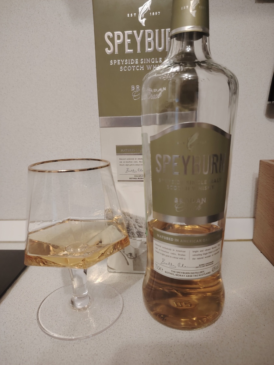 - Чрезмерное употребление алкоголя вредит вашему здоровью. Алкоголь противопоказан детям и подросткам до 18 лет, беременным и кормящим женщинам, лицам с заболеваниями центральной нервной системы, почек, печени и органов пищеварения. Ave, квириты! Сегодня обозреваем очень хороший (возможно) виски «Speyburn bradan orach». Изготовитель «Inver House Distillers Ltd», Шотландия. Эксклюзивный дистрибьютер – Ароматный мир. Bradan orach– это в переводе с гэльского «Золотой лосось». Ну, лососнём тунца. Странно. Сайт есть, очень хороший (https://www.speyburn.com/our-whisky), но вот золотого лосося там нет… Почему? А так в линейке ещё много разных видов этого виски. Ну посмотрим тогда информацию дистрибьютера. Виски Speyburn Bradan Orach имеет «округлый» сбалансированный вкус, в котором присутствуют тона меда, насыщенные ноты зеленого яблока и ванильная свежесть. В продолжительном маслянистом послевкусии раскрывается легкая лимонная кислинка и пряные тона специй, дополненные привкусом древесины. С
