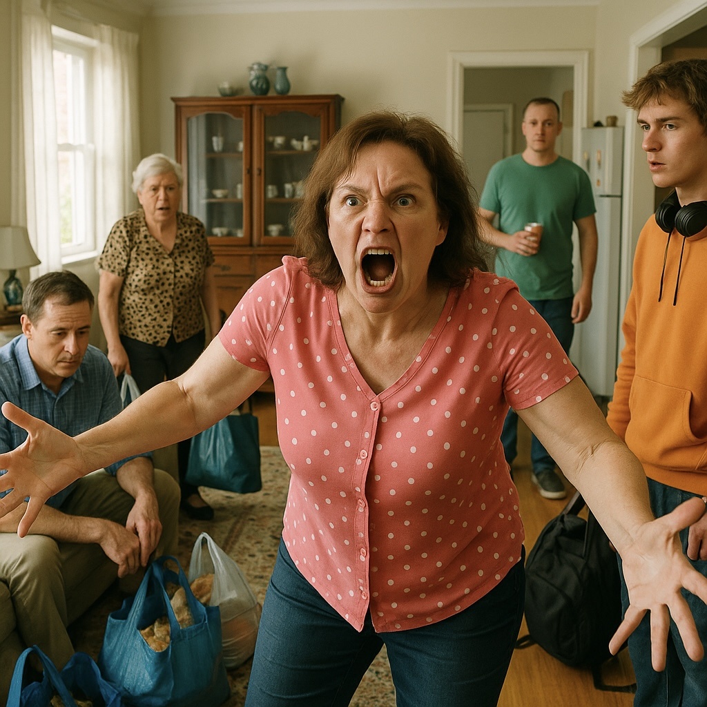 Зинаида Петровна — маленькая, круглая, в норковой шубе нараспашку, с сумками в обеих руках. За ней тётя Лариса — крашеная блондинка в леопардовых лосинах, на каблуках, от которых паркет скрипит. Дядя Витя — лысый, потный, с пакетами пива. И Дима — племянник двадцати лет, в наушниках, уставился в телефон.