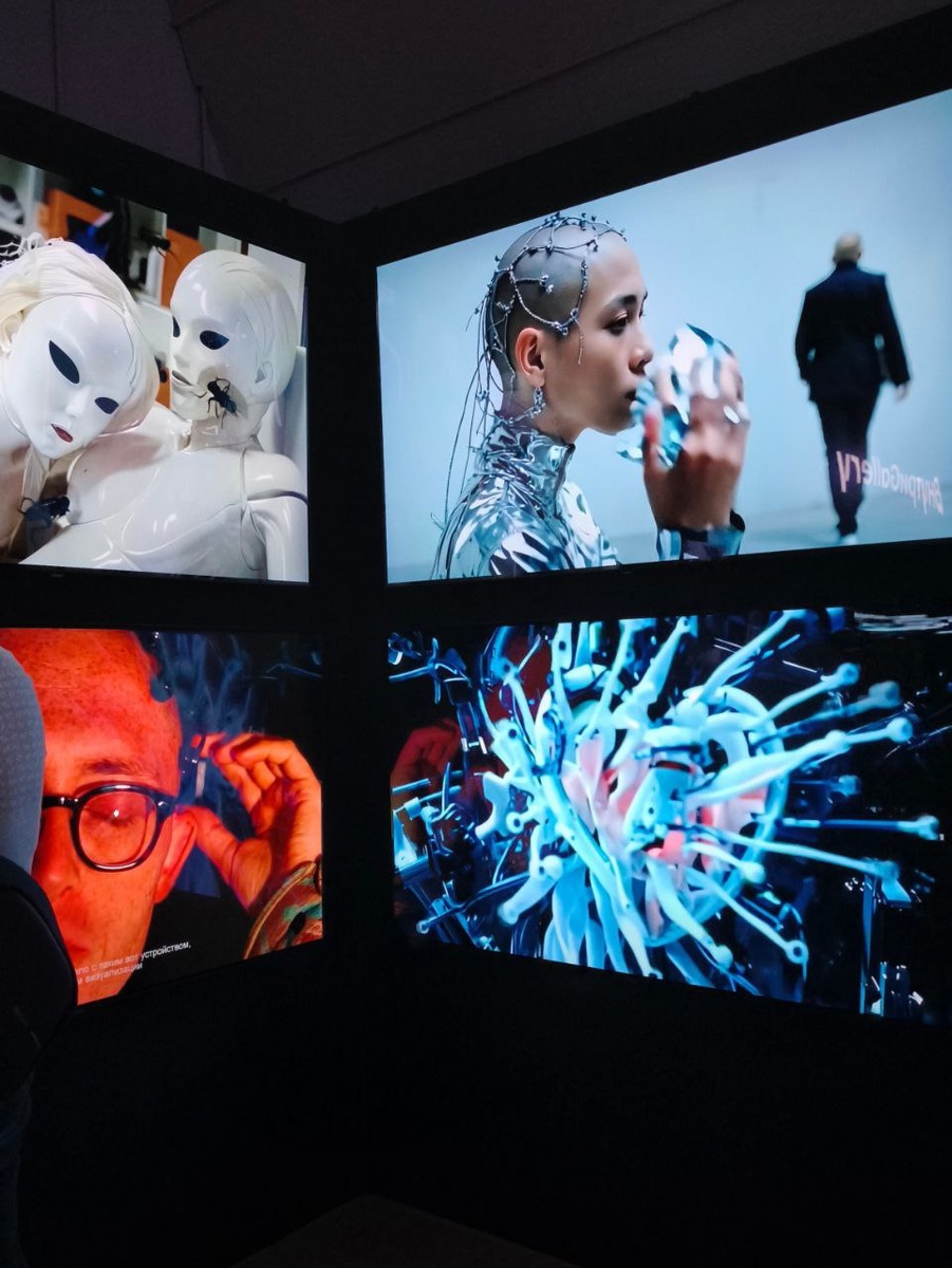 Сегодня нас пригласили в центр цифрового искусства «Внутри». Здесь стартовала выставка-исследование «Предчувствую тебя» — про любовь, близость и технологии. Название — цитата Блока. Только вместо Прекрасной Незнакомки — Будущее. Оно флиртует и слегка пугает: лайки стали признаниями, эмодзи — тихими вздохами, нейросети — случайными свидетелями наших чувств. Экспозиция ведёт по трём зонам: ✨ МЫ — отношения с миром. OLED-экраны, видеоарт и генеративная графика задают пульс реальности: от нейроарта Аристарха Чернышёва (гибрида анатомии и механики) до проекта SAVE lab, где инсталляция визуализирует темперамент человека. ✨ ТЫ — отношения двоих. Скульптуры и фиджитал-инсталляции исследуют близость и границы. Здесь чувства буквально проходят через интерфейсы и датчики. «Дива и скиталец» превращает цифровое соединение в чувственный жест. «Красная нить» Вероники Блуд и 3D-сердце демонстрируют хрупкую красоту любви. ✨ Я — встреча с собой. В большом проекционном зале стены и пол становятся з