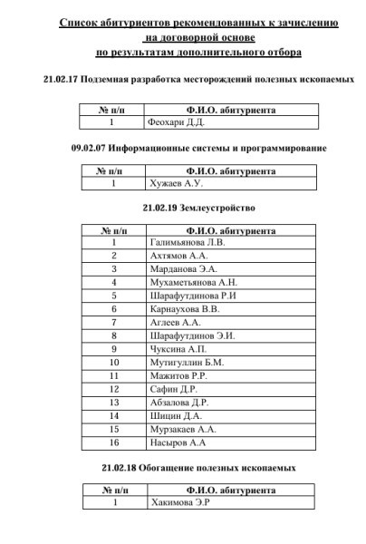 Уважаемые абитуриенты, публикуем список рекомендованных к зачислению на договорной основе по результатам дополнительного отбора