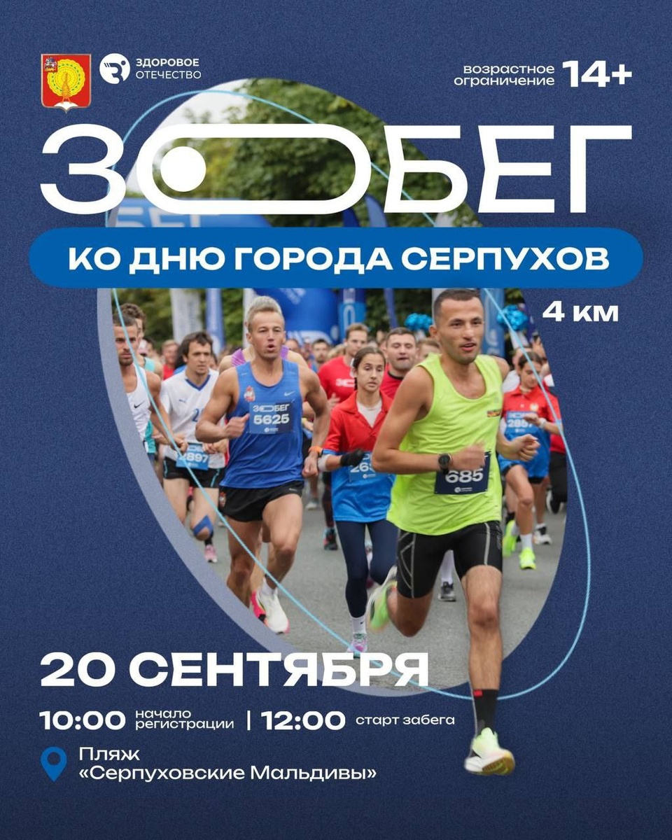 ✨ ЗОбег на День города 🏃Бежим по набережной 4 км 10:00 регистрация 12:00 старт забега 13:00–13:30 награждение Далее мастер-классы, концерт до 20:00 С собой 💙 паспорт 💙 справку о допуске 💙 разрешение от родителей — для участников от 14 до 18 лет Регистрируйтесь прямо сейчас ✍️ https://clck.ru/3PHXtK и ✍️@ZO_community_bot 🚫 Возраст: 14+ 📆 20.09.2025 🕒 10:00 🏢 Пляж "Серпуховские Мальдивы" 📍 г.о. Серпухов, городской пляж на Оке (координаты: 54.883674, 37.421714) 💰 Вход свободный❗️ #webСерпухов ⭐Поддержать канал голосом 💰 Вакансия - курьер в Серпухове ✅ Мероприятия Серпухов https://dzen.ru/id/66f01c6eb4c6fe60c9ca1608 http://vk.com/serpukhov_events http://dzen.ru/serpukhov_events