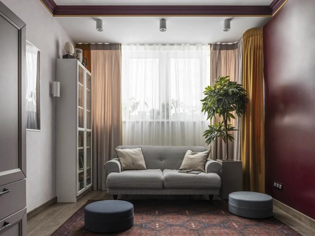 Жительница Самары, в одиночку воспитывающая дочь, купила эту квартиру в одной из новостроек с черновой отделкой от застройщика. Однушка была большой — 49 квадратов, но с единственной жилой комнатой. Выделить еще одну спальню было сложно из-за особенностей планировки: в квартире всего два окна. Но хозяйке с помощью специалистов удалось зонировать однушку и выделить место для двух спальных мест — для себя и дочки. Интерьер получился ярким и атмосферным, со своими уникальными деталями и вещами, которые владелица квартиры берегла всю жизнь. ❗️Объявление! У меня есть блог в Телеграм о домах — там новые истории и мои покупки для дома. Вот, например, обзор крошечной студии 25 квадратов на окраине Москвы, где живет врач-сомнолог (я еще не публиковала эти фото в Дзене). А вот атмосферный старый дом, где 300 лет назад жила семья аптекарей. Посмотрите, как этот дом выглядит сейчас! Единственную комнату (длинную и узкую словно пенал) разделили на три части: в самой дальней от окна сделали гардероб