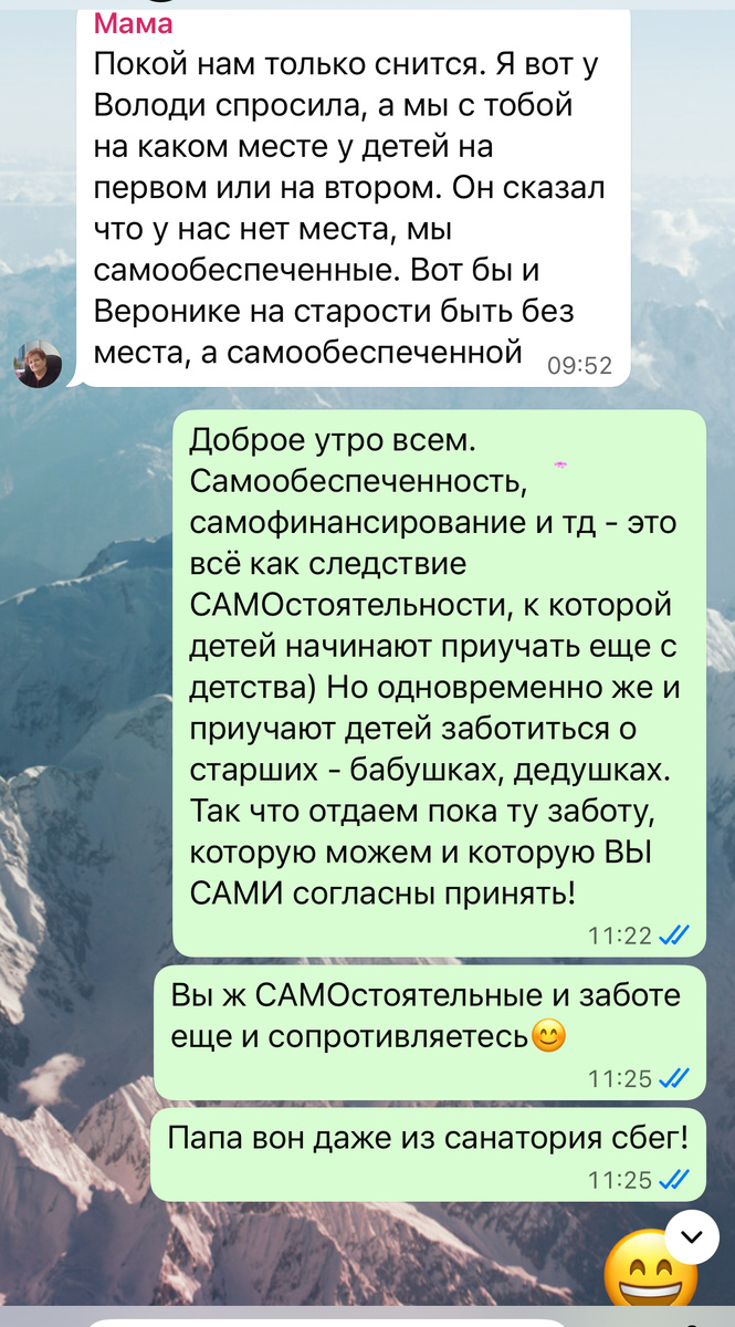 Это наша с братом просто больная тема - родители отказываются проходить любые обследования. У папы твердая позиция, что он не ходит к врачам, так он чувствует себя здоровым. Ну хотя бы не отказывается принимать мамины снадобья по народным советам из газеты ЗОЖ…