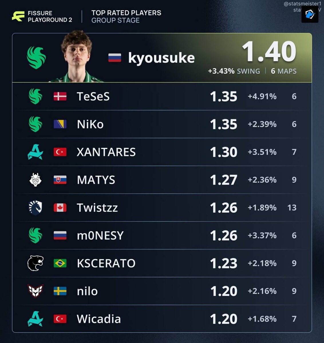 На турнире FPG 2 завершилась групповая стадия, и уже сейчас можно выделить лучших игроков. 😎 Команда Falcons продемонстрировала впечатляющую игру, заняв лидирующие позиции в рейтинге. Все четыре игрока команды вошли в топ лучших, что свидетельствует о слаженной и мощной игре коллектива. Особое внимание заслуживает kyousuke, который показывает выдающиеся результаты. В случае победы Falcons на турнире, у него есть все шансы получить звание самого ценного игрока (MVP). Это будет заслуженной наградой за его вклад в успех команды. FPG 2 продолжает радовать зрителей напряженными матчами и высоким уровнем игры. Следите за дальнейшими событиями турнира, чтобы не пропустить важные моменты и финальные сражения. 🔗 Больше новостей смотрите на News.Mentup