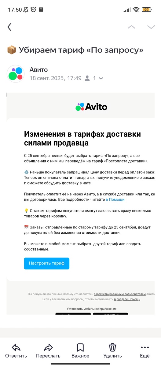Новости от Авито про доставку силами продавца